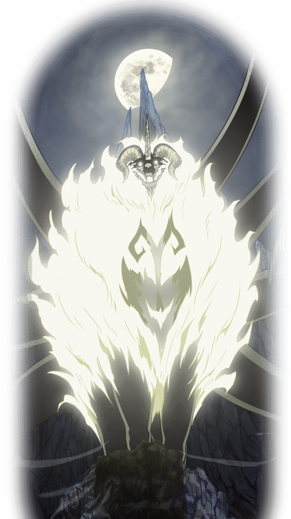 「月光のクレバテス」と呼ばれる、四体の魔獣王の一人です。圧倒的な力と知性を持ち、人間たちから恐れられる存在です。その姿は獣の特徴を持ちながらも、威厳に満ちた印象的なデザインで描かれています。長く伸びた角と鋭い爪、そして月光を思わせる青白い光を纏う姿は、彼の強大な力を象徴しています。