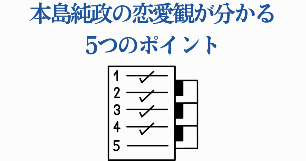 ここからは、これまでの発言やエピソードから見えてくる「本島純政の恋愛観」を、分かりやすく5つに整理していきます。