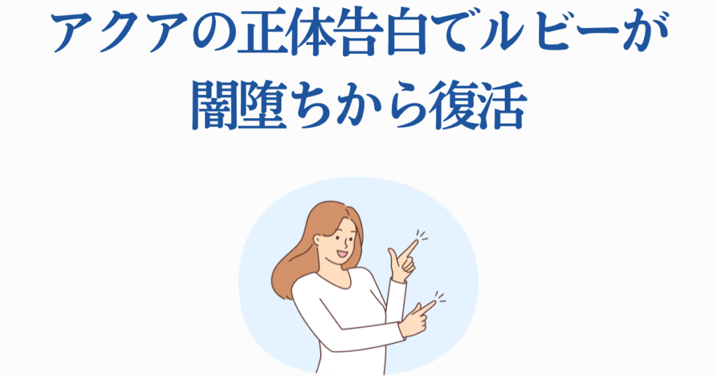この告白により、ルビーは闇堕ち状態から救われます。探し続けていた想い人がずっと隣にいたことを知ったルビーは、涙を流しながらアクアの胸に飛び込み、本来の自分を取り戻すことになるのです。
