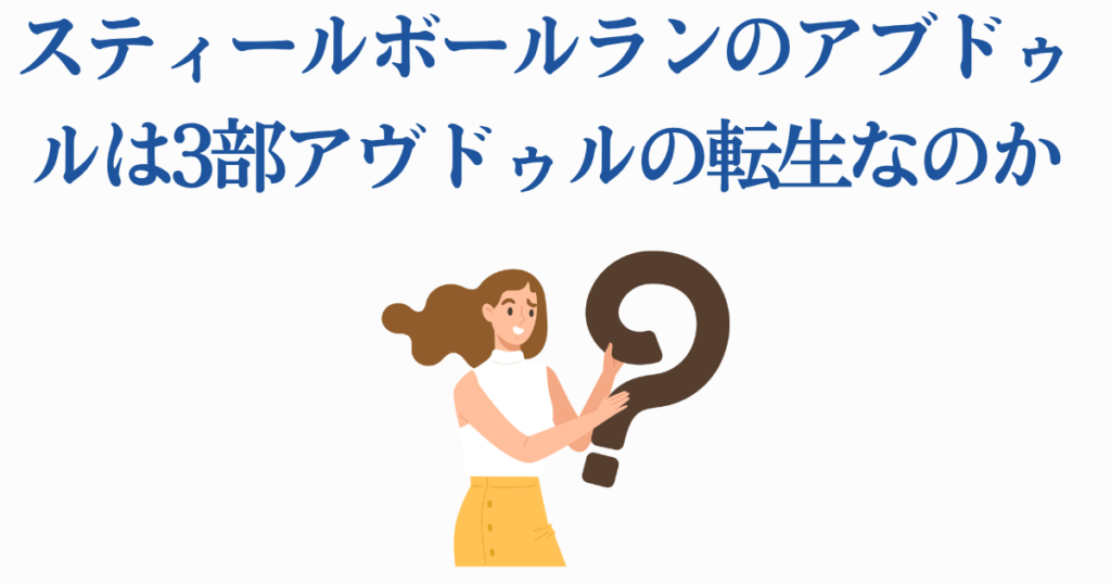これが最もよくある質問で、端的に答えると「同一人物ではないが、無関係でもない」です。3部のモハメド・アヴドゥルと7部のウルムド・アブドゥルは、作中の世界設定上では完全に別の人物です。SBRはPart6完結後に生まれた「新世界線」を舞台とした物語であり、登場人物たちは旧世界線のキャラクターの転生・対応キャラという位置づけになります。荒木飛呂彦は「パラレルワールドの存在と考えてほしい」と明言しており、同一人物ではなく「似た魂を持つ別の存在」として設計されています。外見や設定の類似点は、荒木先生が意図的に施したオマージュであり伏線です。