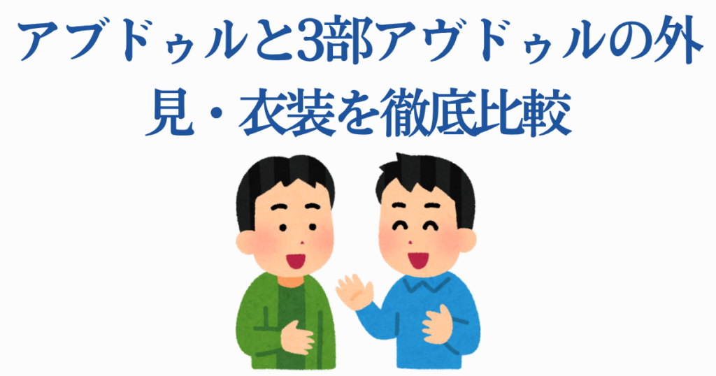 SBRを読み進めていくと、あるいは今まさにアニメで初めてアブドゥルを目にしたとき、多くのファンが同じ疑問を抱くはずです。「このキャラ、3部のアヴドゥルじゃないか…?」という直感ですよね。名前の類似、エジプト出身という共通点、さらには顔立ちや首飾りのデザインまで酷似しています。はたして、ウルムド・アブドゥルとモハメド・アヴドゥルの関係はどのようなものなのでしょうか。ここでしっかり整理しておきましょう!
