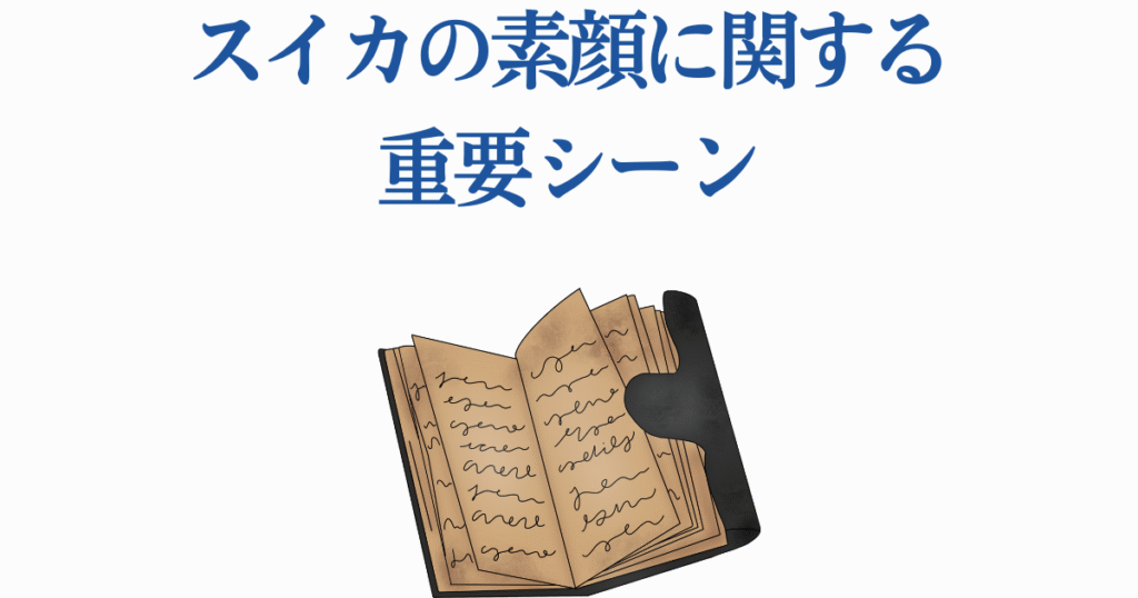 ここでは、スイカの素顔に関する物語上の重要なシーンを詳しく解説していきます。これらのシーンを通じて、スイカというキャラクターがどのように成長し、物語にどう関わっていくのかが見えてくるでしょう。