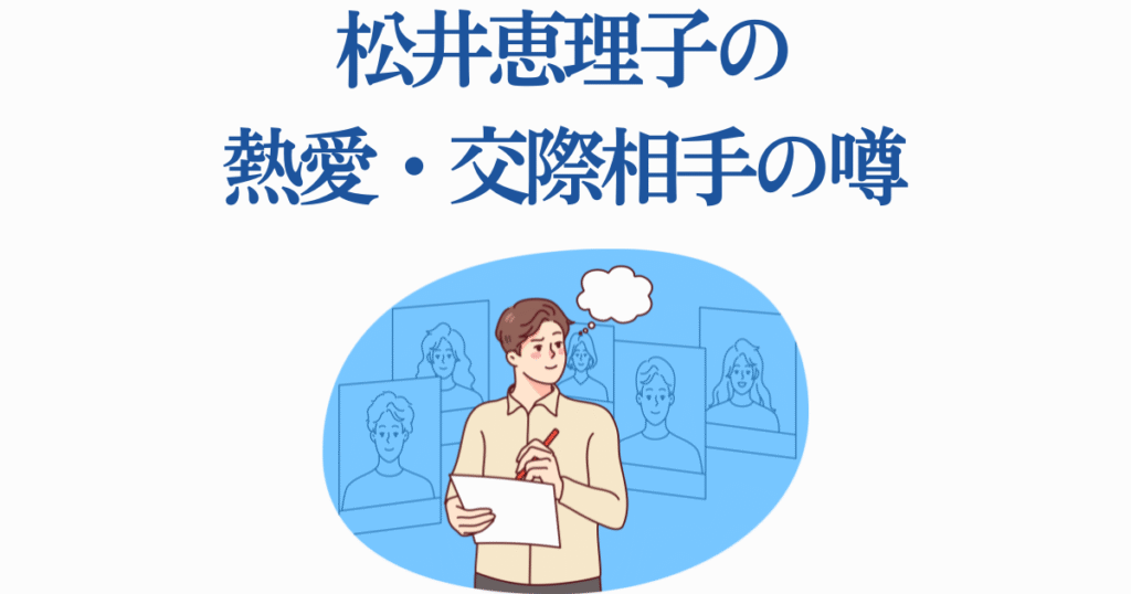 結婚の可能性と同じくらいファンが気になるのが、松井恵理子さんの恋愛事情です。デビューから15年以上のキャリアを誇る松井さんですが、これまでに熱愛報道や交際の噂はあったのでしょうか。徹底的に調査した結果をお伝えします。