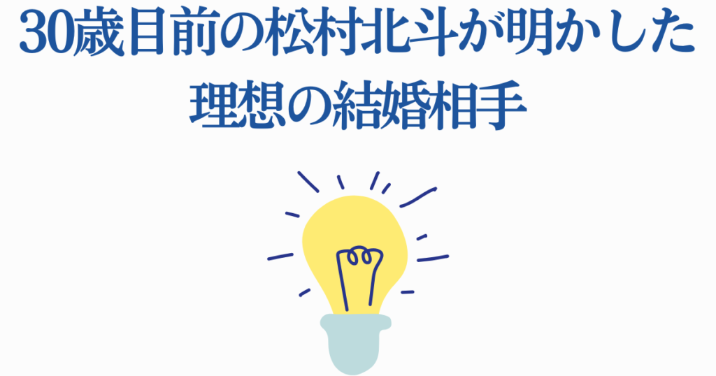 松村北斗の結婚時期について正確に予測することは困難ですが、彼自身が過去に語った発言からいくつかのヒントを読み取ることができます。
