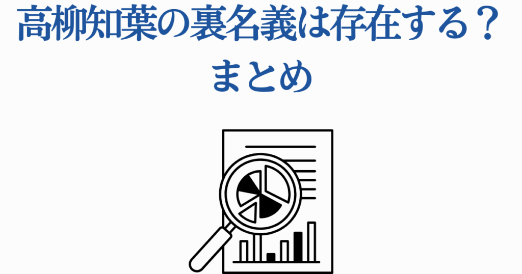 このような状況から判断すると、現時点では高柳知葉さんの裏名義は存在しない、または極めて秘匿性の高い形で管理されている可能性が高いと結論づけられるでしょう。