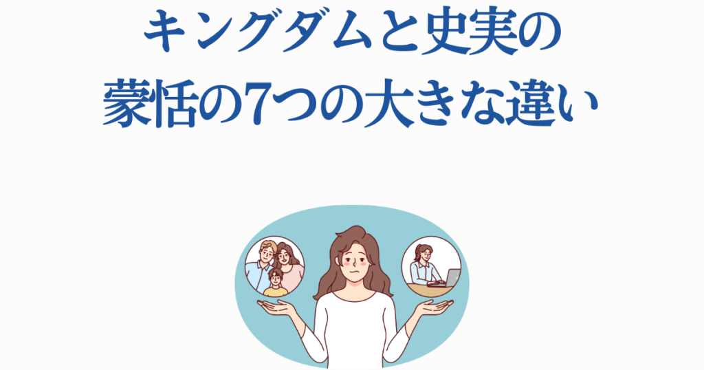 キングダムファンの皆さん、お待たせしました!ここからが最もエキサイティングな部分です。原泰久先生がどれほど創造的な筆致で史実の蒙恬を現代風にアレンジしたかを見ていきましょう。その違いを知ることで、キングダムの世界がより深く楽しめること間違いなしです!
