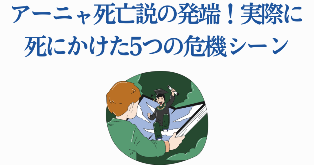 ここでは、アーニャが実際に死にかけた(あるいは死にそうになった)5つの危機的シーンを振り返ります。どのエピソードも「一歩間違えたら本当に危なかった!」と思わずにはいられない緊迫した場面ばかり。これらのシーンを知れば、なぜ「死亡説」が囁かれるようになったのか納得できるはずです。