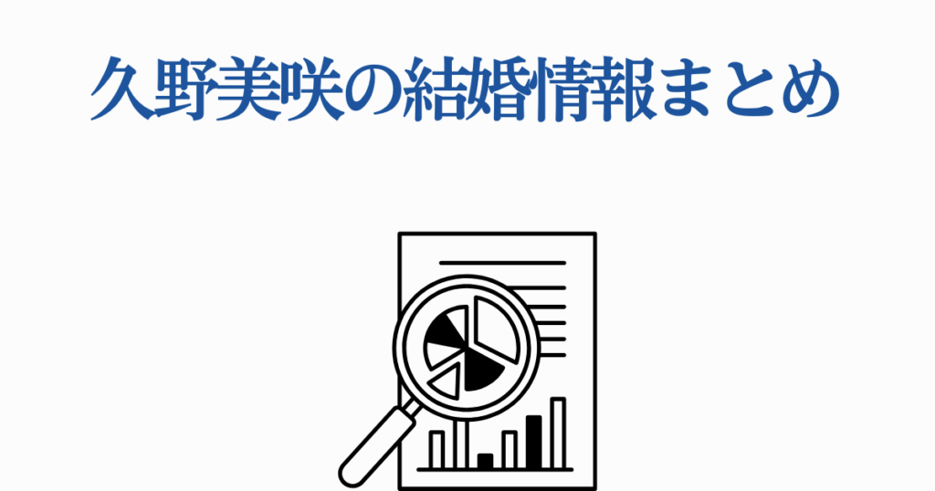 ここまで久野美咲さんの結婚や恋愛に関する情報を詳しく見てきました。最後に、重要なポイントをまとめておきましょう。
