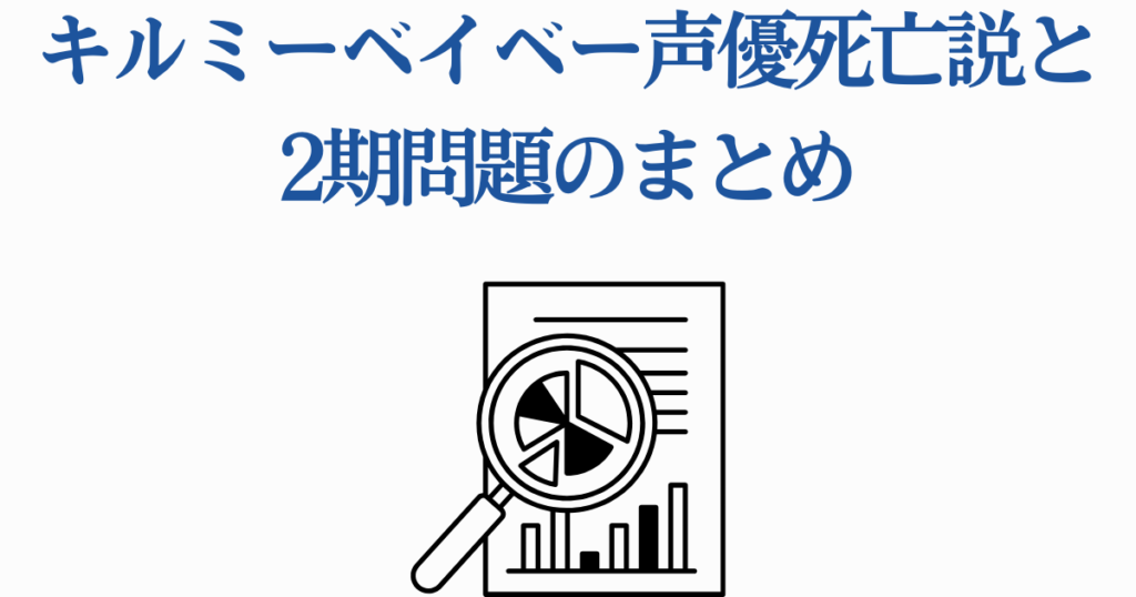 - キルミーベイベーの声優死亡説は完全な誤情報であり、実際に亡くなったキャストはいない
