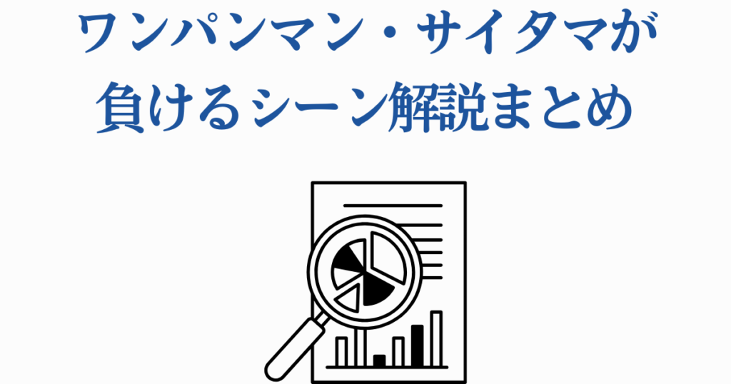 本記事では、サイタマが敗北を喫した6つのシーンを徹底解説します。何巻何話で読めるのか、どのような状況での敗北だったのかを詳しくご紹介。戦闘での敗北から意外なゲーム対決での負け、そしてヒーローとしての精神的な敗北まで、サイタマの多面的な姿が見えてきます。