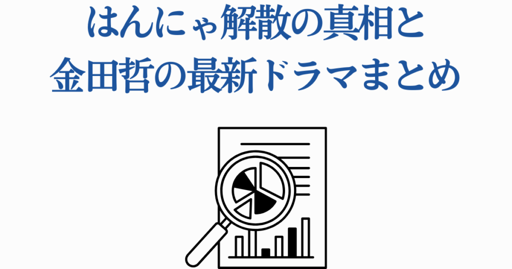はんにゃは解散していません。2025年現在も、吉本興業所属のお笑いコンビとして活動を継続しています。金田哲さん自身も複数のインタビューで「解散していない」と明言しており、舞台やライブでコンビとして出演することもあります。