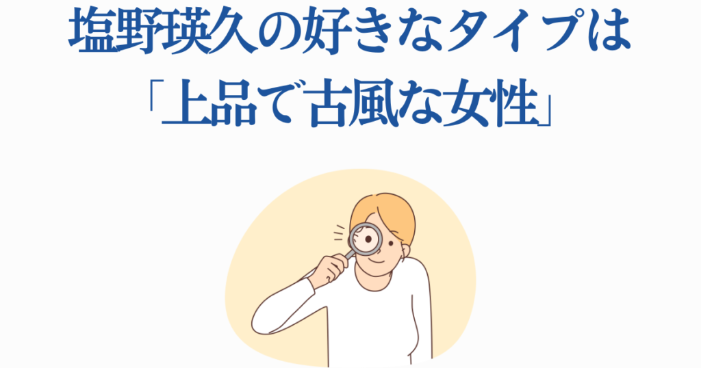 塩野さんにとっての「上品さ」とは、単に見た目が綺麗ということではありません。むしろ、日常の何気ない行動や仕草の中に現れる品の良さ、相手への配慮や気遣いができることを指しているようです。派手さや華やかさよりも、落ち着いた雰囲気を持つ女性に魅力を感じるタイプだと言えるでしょう。